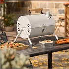 - Gril na drevené uhlie: Gril, do ktorého je potrebné pridávať uhlie alebo drevo a udržiavať správnu teplotu. Tento typ grilu dáva jedlu výraznú grilovaciu chuť a je vhodný pre tých, ktorí si radi užívajú autentický zážitok grilovania. Nevýhodou môže byť dlhšie časové trvanie prípravy, potreba ručného rozohrievania uhlia a pravidelné čistenie od popola. Je potrebné používať odkvapkávaciu misku, aby tuk netiekol priamo na rozpálené uhlie. Kde kúpiť: HEUREKA WEBER